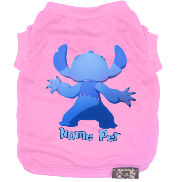 Feita com tecido leve e confortável, ela é perfeita para o dia a dia, passeios ou momentos especiais. O destaque fica por conta da personalização com o nome do seu pet, deixando a peça única e cheia de amor.